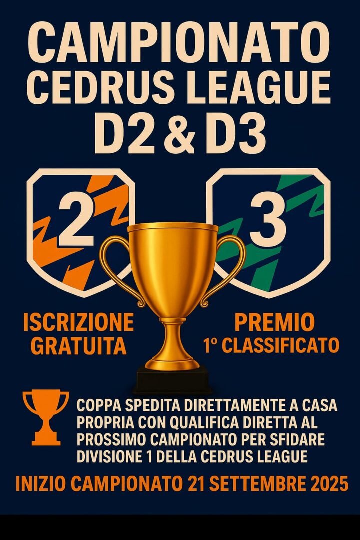 Il campione della categoria D2/D3 vincerà 2 ore di coaching con il celebre pro player e streamer GamblerPRO, oltre a un trofeo che riceverà direttamente a casa. Ma questo è solo l’inizio: la vera conquista è guadagnarsi il rispetto degli avversari, poter proclamare “sono io il campione” e difendere quel titolo fino alla prossima stagione. E quando il torneo finisce, la Cedrus League non si ferma: restano le amichevoli, le rivalità, i consigli e quella voglia di tornare a giocare per qualcosa di più.