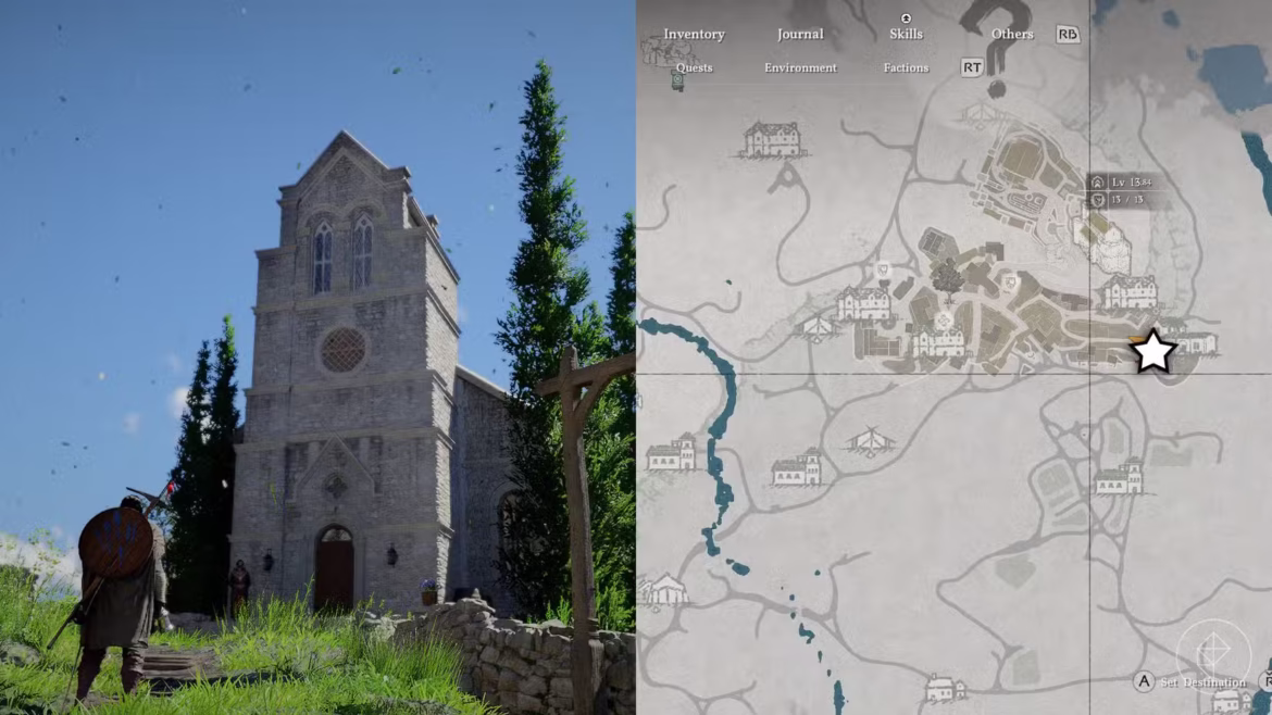 Nelle prime ore di gioco ci sono due luoghi da conoscere subito. Il primo è la Church of Hernand, situata a est di Hernand Town, poco sotto Hernand Castle. È uno dei primi insediamenti importanti che visiterai, quindi è anche il confessionale più facile da raggiungere all’inizio.