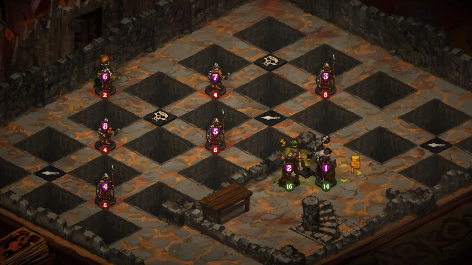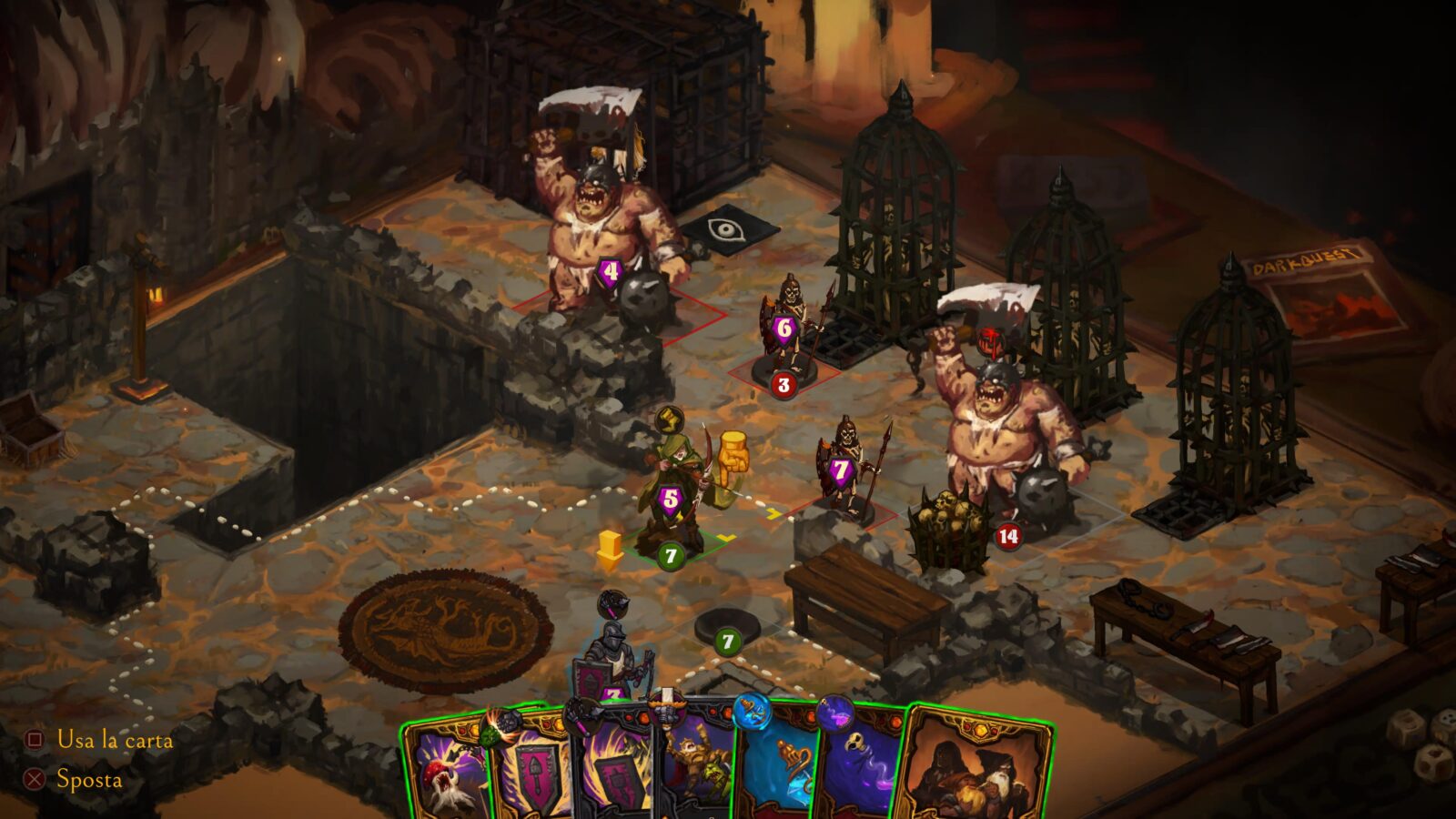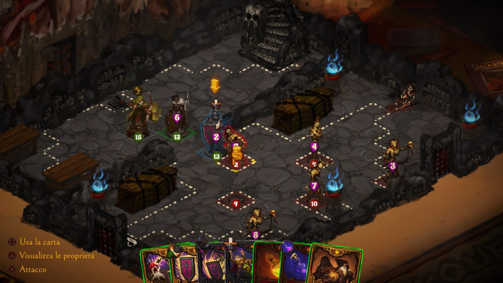 I combattimenti avvengono nel puro stile dei GdR da tavolo. Puntatore sul nemico, clicchiamo due volte per conferma, e il nostro eroe cammina sulle caselle per raggiungere il nemico e colpirlo. C’è sempre un limite all’area di caselle in cui ogni eroe possa muoversi, aumentabile tramite l’utilizzo di carte specifiche. In alcune stanze particolarmente grandi, mago e arciere ci danno un buon aiuto poichè colpiscono i nemici lontani con frecce e magia, soprattutto i nemici che possono a loro volta colpire i nostri eroi con frecce o incantesimi quasi imparabili. Questo ci porta a ragionare bene su chi portare con noi in ogni dungeon, preferendo sempre e comunque una squadra mista come già detto in precedenza.