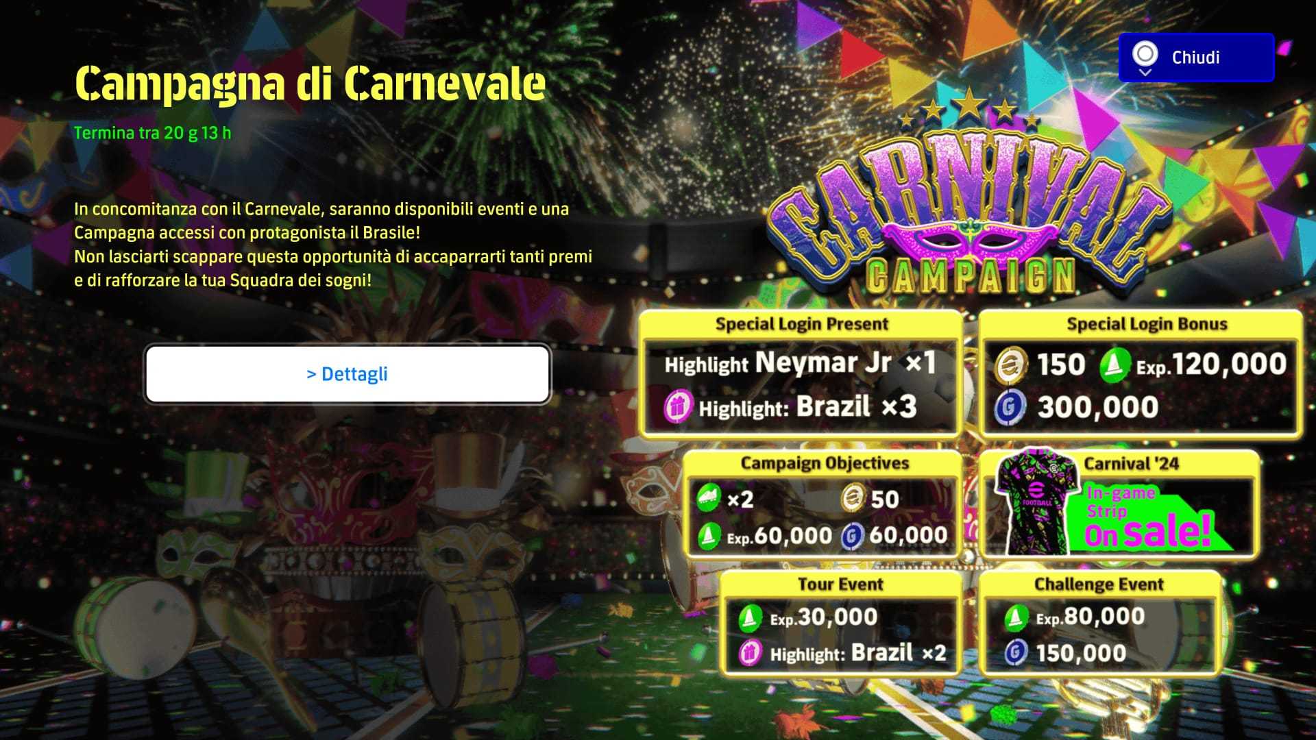 E’ iniziata oggi, 1 febbraio e terminerà il 7 marzo, la stagione 4 di eFootball 2024 dedicata al carnevale e alla nazione che fa di questa festa un vero culto, ovvero il Brasile.