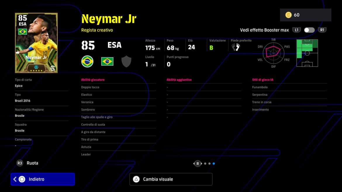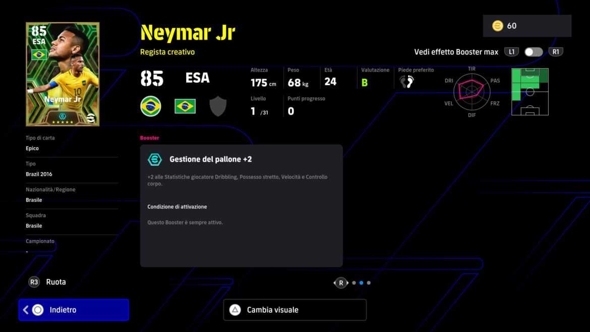 Con la nuova stagione Konami ha voluto regalare ai giocatori una nuova versione di Neymar gratuita e una versione boostata (il Neymar più forte del gioco fino a questo momento) presente in un pool da 150 giocatori in cui ci sono anche le versioni boostate di Denilson e Romario.
