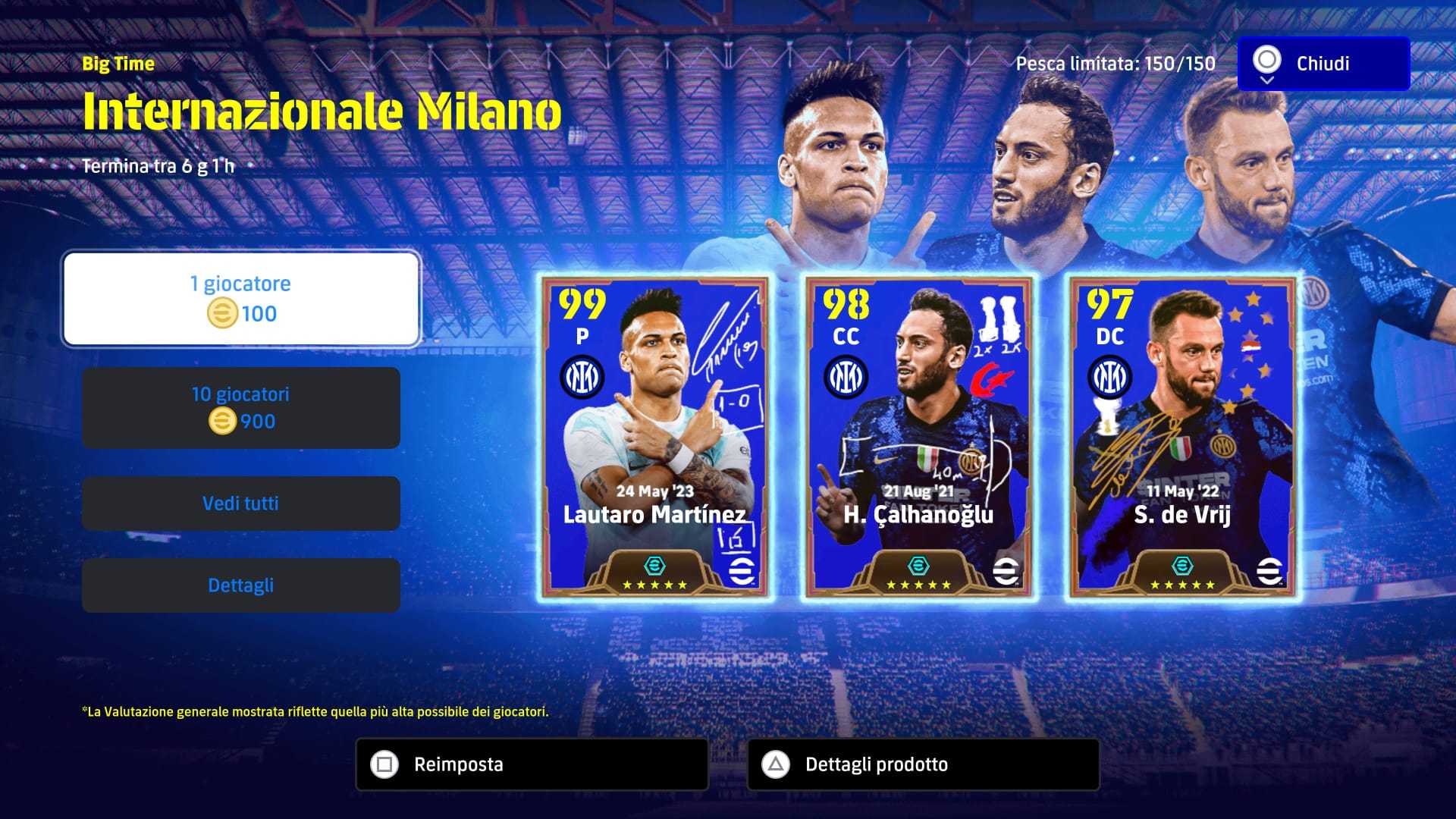 Nel pool, di 150 giocatori, è possibile trovare Lautaro, Calhanoglu e De Vrij in versione big time boostata. Andiamo a vedere nel dettaglio le singole carte.
