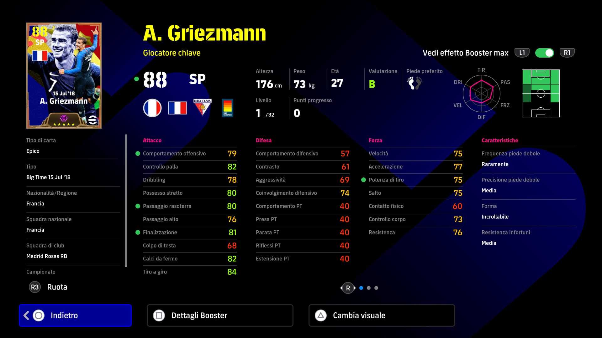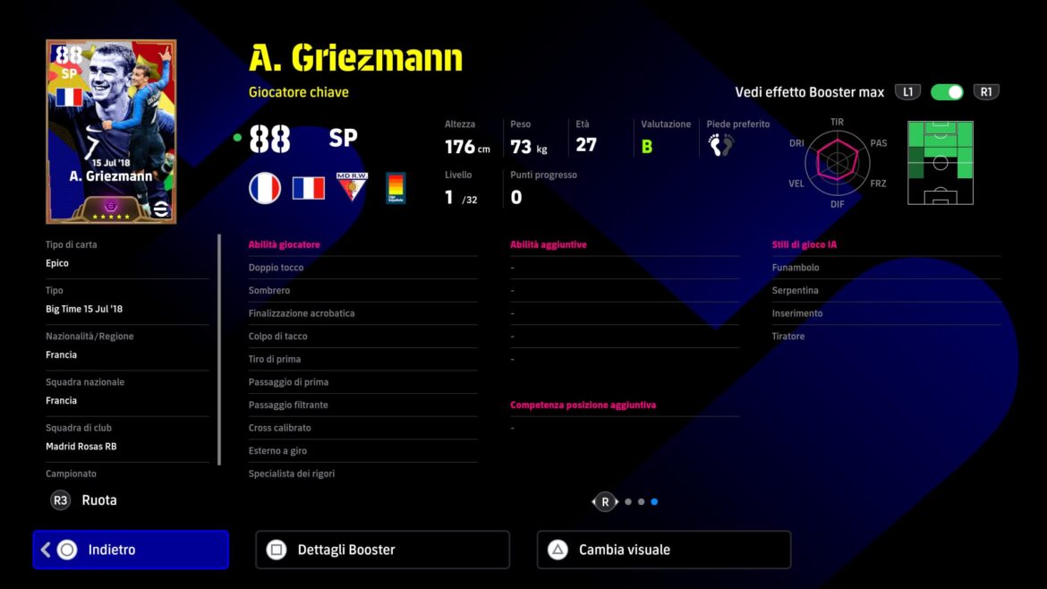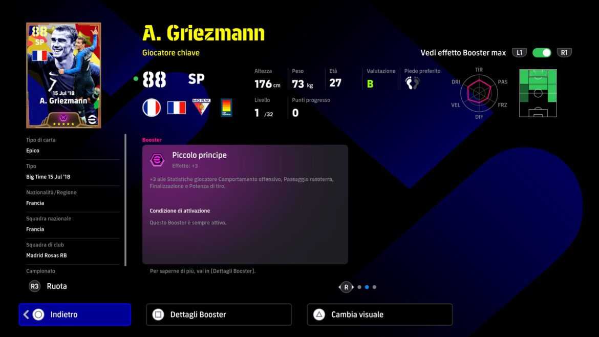 In particolare nel pool della Francia è caratterizzato dalla presenza di un Griezman dalle caratteristiche importanti e dotato di un ottimo boost.  Vediamo il dettaglio del giocatore nello slide qui di seguito.