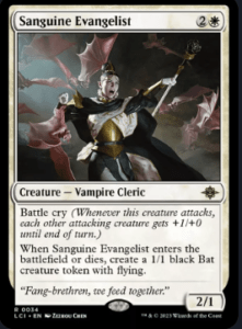 Restless Anchorage entra in gioco tappata (l’ideale sarebbe calarla proprio al primo turno) ma se si riesce a trasformarla senza metterla troppo in pericolo è davvero notevole mentre Sanguine Evangelist non solo crea pedine ma le potenzia anche con Battle Cry ed è una perfetta carta come collante per l’intera lista. Vi confesso che con questi colori al momento sono più concentrato su UW Flash piuttosto che Tokens ma devo ammettere che anche questa possibilità comunque intriga parecchio.