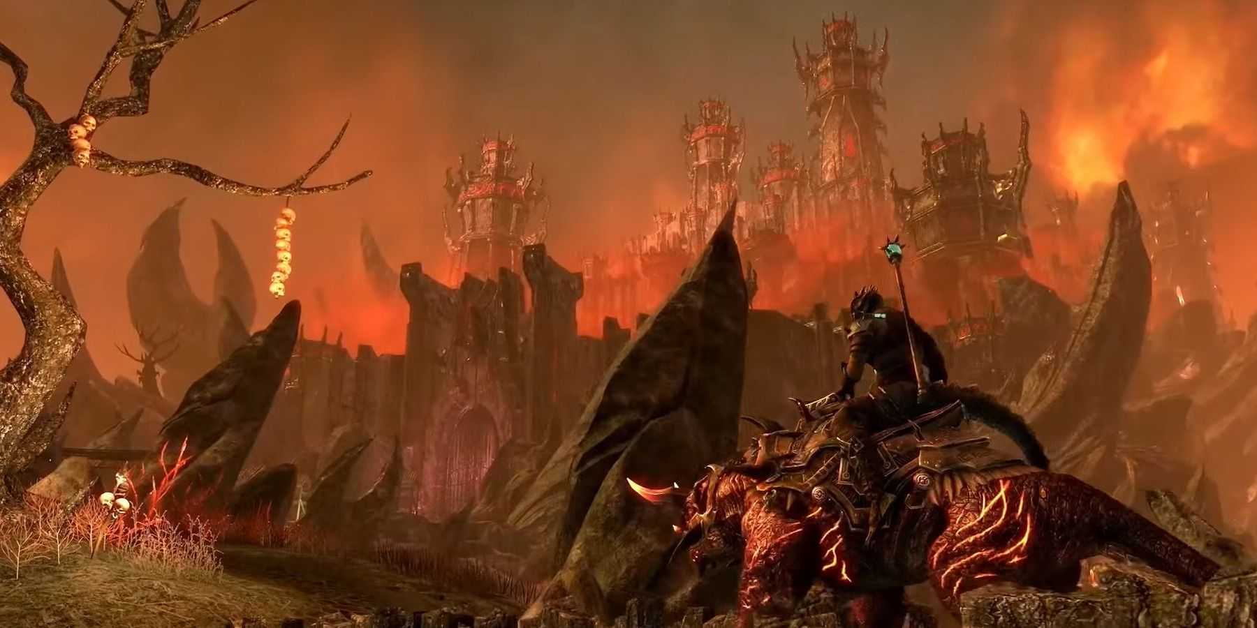 Uno degli elementi davvero forti di questo DLC però sono indubbiamente le ambientazioni dove esso ha luogo, a nostro modo di vedere siamo ad un livello qualitativo elevatissimo. La storia si snoda principalmente tra Fargrave, la città dei mille portali che la collegano a quasi tutte le zone di Tamriel, e le già citate Deadlands. Fargrave risulta una metropoli viva, dai richiami quasi orientali (elemento che si denota anche di più che in Elsweyr, dove il richiamo verso la cultura orientale è molto forte), piena zeppa di cose da fare e da vedere, ma soprattutto sempre pronta a fornirci un qualche personaggio particolare da incontrare. Ma sicuramente l’ambientazione che ha colpito di più la nostra fantasia sono le Deadlands: queste sono delle lande irte di pericoli, che vedono delle zone vulcaniche, ma dovrete stare attenti nelle vostre esplorazioni, in quanto vi capiterà di incontrare zone dove ci sono continue scariche di fulmini che ovviamente vi faranno danno. Insomma, queste scelte stilistiche rendono assolutamente l’idea della pericolosità del luogo.