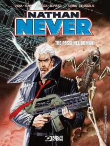 • Nathan Never: Tre Passi nel Domani (volume unico della collana Libri Nathan Never) al costo di 22,00€ in uscita il 20 maggio: “In una nuova edizione per festeggiare i trent’anni di Nathan Never, il volume speciale pubblicato per la prima volta in occasione del ventennale del personaggio, che contiene tre storie scritte da Medda, Serra e Vigna. Nathan Never si tuffa nel cyberspazio, alla ricerca di tre milioni di crediti scomparsi durante un’indagine condotta alcuni mesi prima. L’ennesima guerra si è appena conclusa e ad Adlan City i residuati bellici causano morti e feriti tra i bambini che giocano in strada. I vulcani di tutto il pianeta sono in eruzione a causa del nuovo folle piano di dominio di Aristotele Skotos! Gli Agenti Alfa entrano in azione per fermare la catastrofe ed evacuare le città.” 144 pagine a colori cartonato in formato 22 x 30. Gli autori sono     GFB Comics.